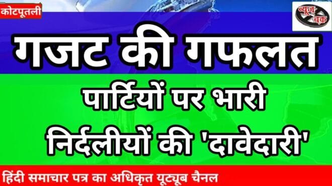 आपको बता दें कि कोटपूतली नगर पालिका बोर्ड अध्यक्ष पद के लिए सीट महिला आरक्षित मानी जा रही थी। जबकि जारी गजट नोटिफिकेशन में यह सीट सामान्य है जिस पर कोई भी दावेदारी जता सकता है। राजनीति में मजबूत दमखम रखने वाले प्रत्याशियों ने अपने-अपने वार्डों से महज इसलिए महिलाओं को चुनाव मैदान में उतारा कि वे नगर पालिका बोर्ड अध्यक्ष सीट महिला आरक्षित मानकर चल रहे थे।