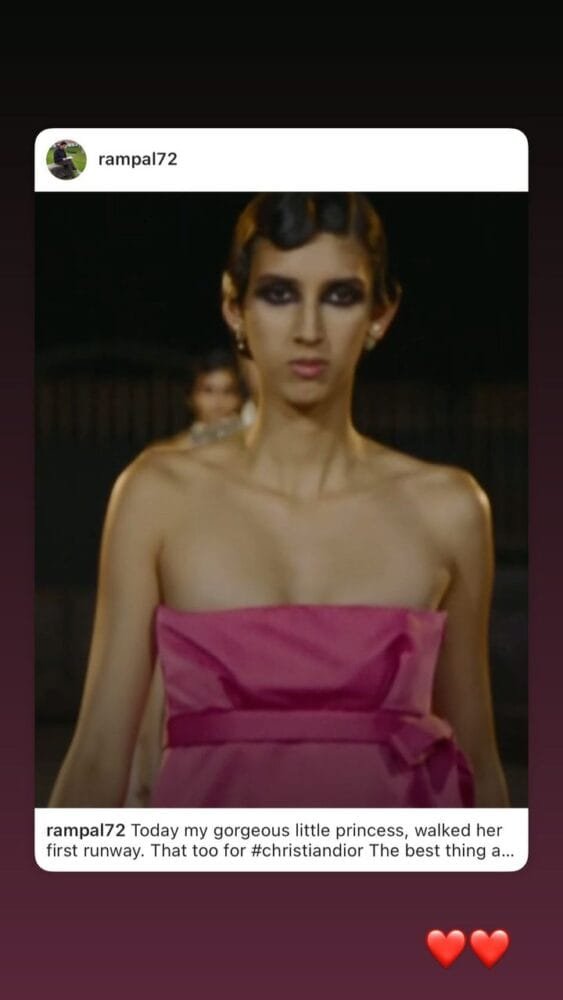 अपने इंस्टाग्राम पर लेते हुए, रामपाल ने अपनी बेटी की एक तस्वीर साझा की, डायर शो से वह रनवे पर चली। मायरा की सफलता और उसके भविष्य के प्रयासों के लिए शुभकामनाएं देते हुए, अर्जुन ने लिखा, “आज मेरी भव्य छोटी राजकुमारी अपने पहले रनवे पर चल रही है। वो भी #Christiandior के लिए। इसकी सबसे अच्छी बात यह थी कि यह सब उन्होंने अपनी योग्यता के आधार पर किया। ऑडिशन से लेकर फिटिंग तक। सभी कठिन प्रतियोगिता से चुने जाने के लिए।”