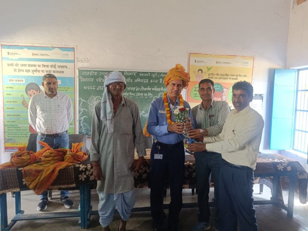 स्कूल के प्रधानाध्यापक दान सिंह यादव ने बताया कि एन एस एस आई कंपनी नीमराना के द्वारा गत वर्ष शौचालय का भी निर्माण करवाया गया था। एसडीएमसी सदस्यगणों व विद्यालय स्टाफ के द्वारा अतिथियों का पुष्प भेंट कर एवं माला, साफा पहनाकर व मोमेंटो भेंट कर सम्मान किया गया।मंच संचालन रेखा यादव ने किया।