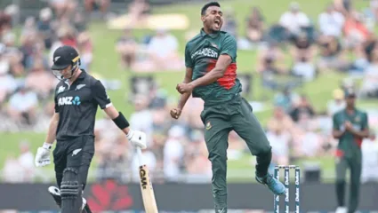 नेपियर: बांग्लादेश (Bangladesh) को शनिवार को यहां तीसरे एक दिवसीय अंतरराष्ट्रीय मैच में न्यूजीलैंड (New Zealand) को नौ विकेट से हराने के लिए महज 15 ओवर लगे जिससे मेजबान टीम की घरेलू मैदान पर 17 मैचों में चली आ रही जीत की लय टूट गयी। न्यूजीलैंड ने तीन मैचों की वनडे श्रृंखला 2-1 से जीत ली।